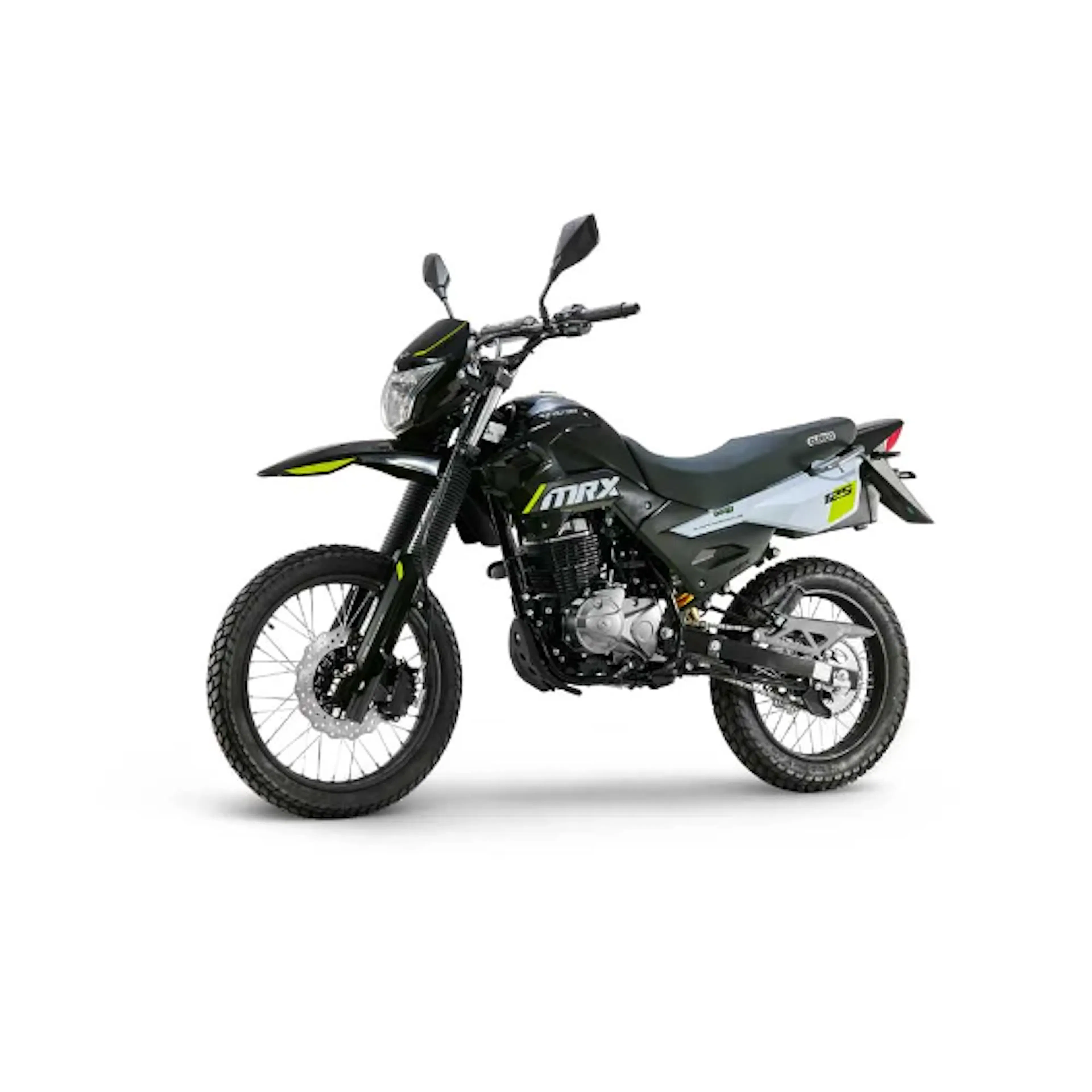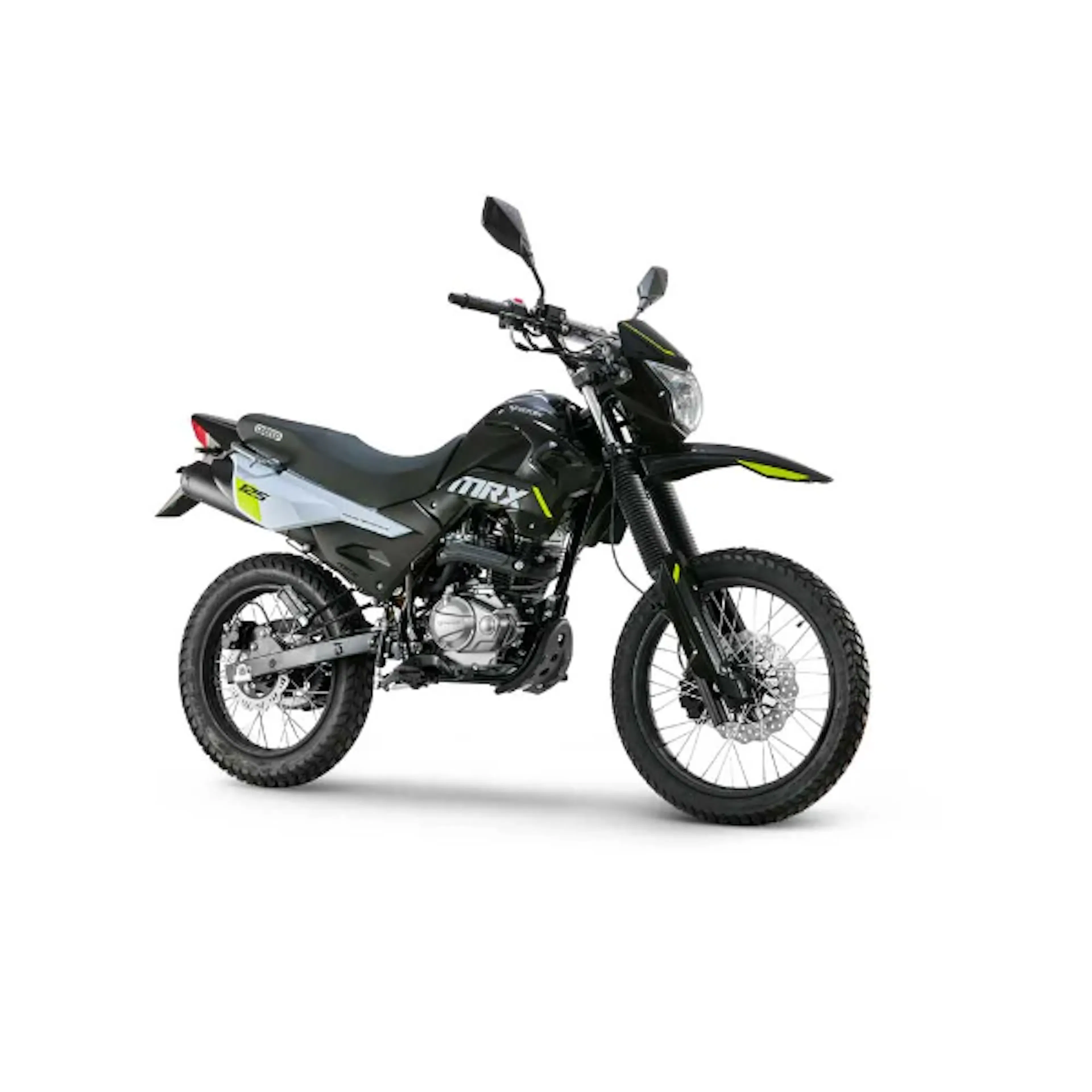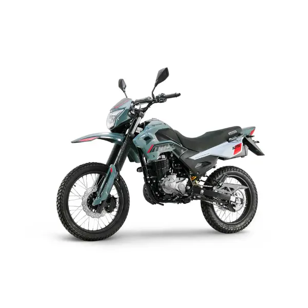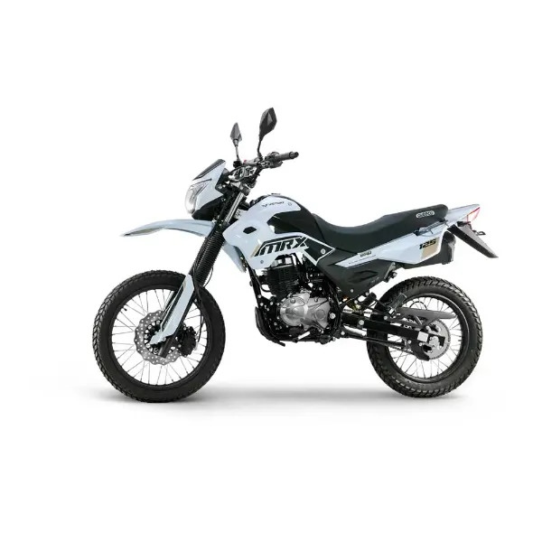 es una enduro liviana: resistente, alta y versátil para moverte en ciudad y meterte por destapado sin preocuparte. Trae motor de 124,7 cc con carburador, 9,7 HP @ 7.500 rpm y 9,2 Nm @ 6.000 rpm, caja mecánica de 5 velocidades, suspensión trasera monoamortiguador, arranque eléctrico y de pedal, y frenos de disco adelante (267 mm) y atrás, con llantas doble propósito 19”/17”.