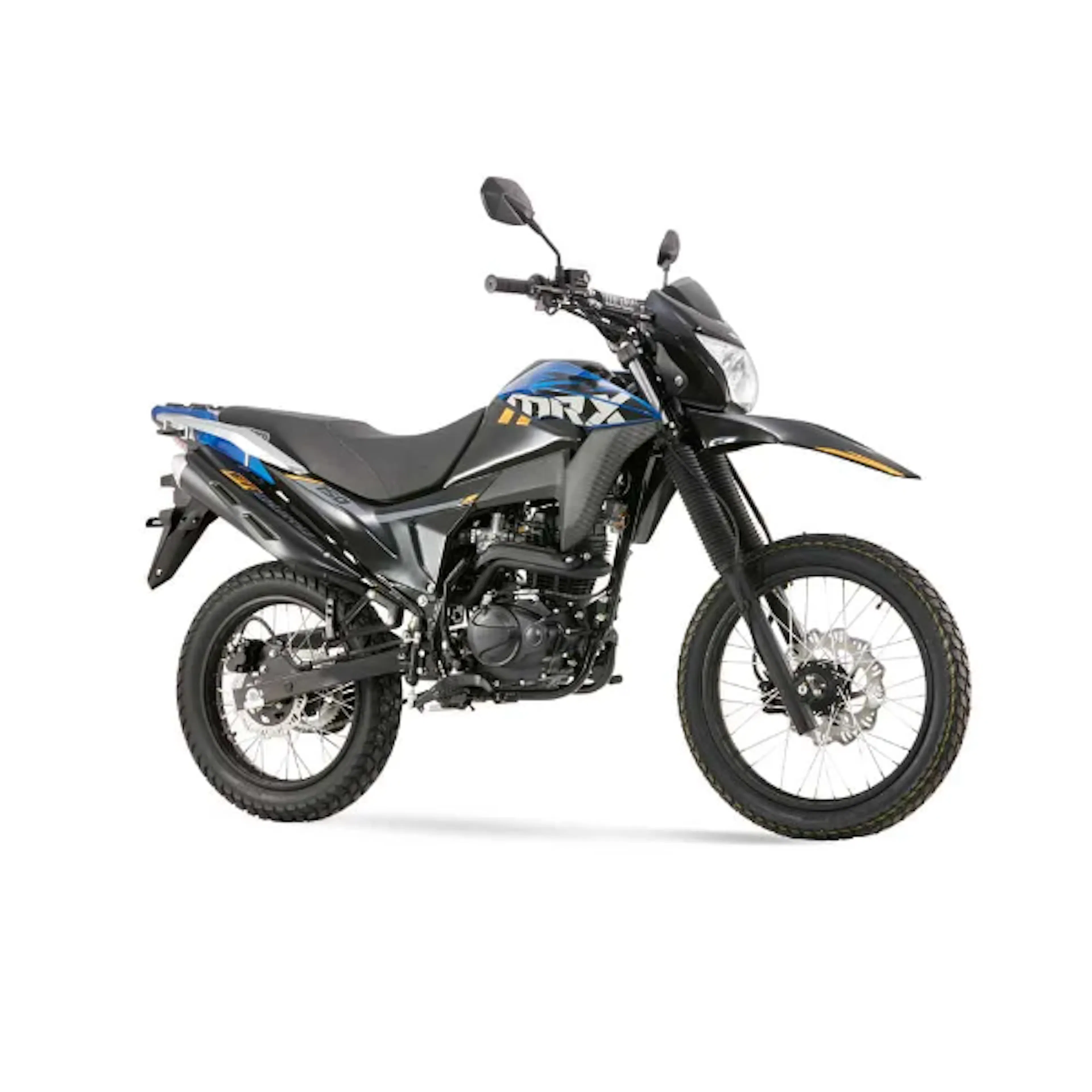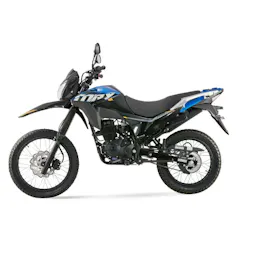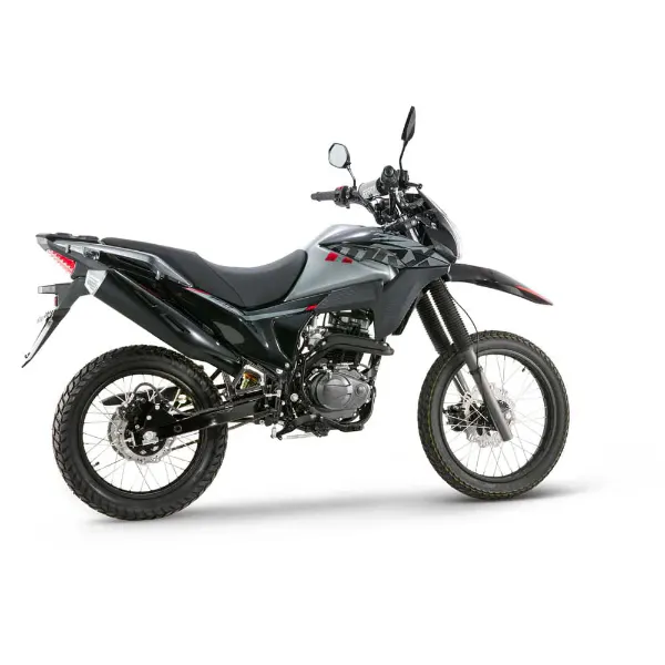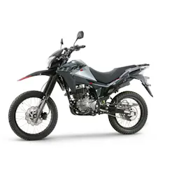 es una enduro liviana: resistente, alta y versátil para moverte en ciudad y meterte por destapado sin preocuparte. Trae motor de 124,7 cc con carburador, 9,7 HP @ 7.500 rpm y 9,2 Nm @ 6.000 rpm, caja mecánica de 5 velocidades, suspensión trasera monoamortiguador, arranque eléctrico y de pedal, y frenos de disco adelante (267 mm) y atrás, con llantas doble propósito 19”/17”.