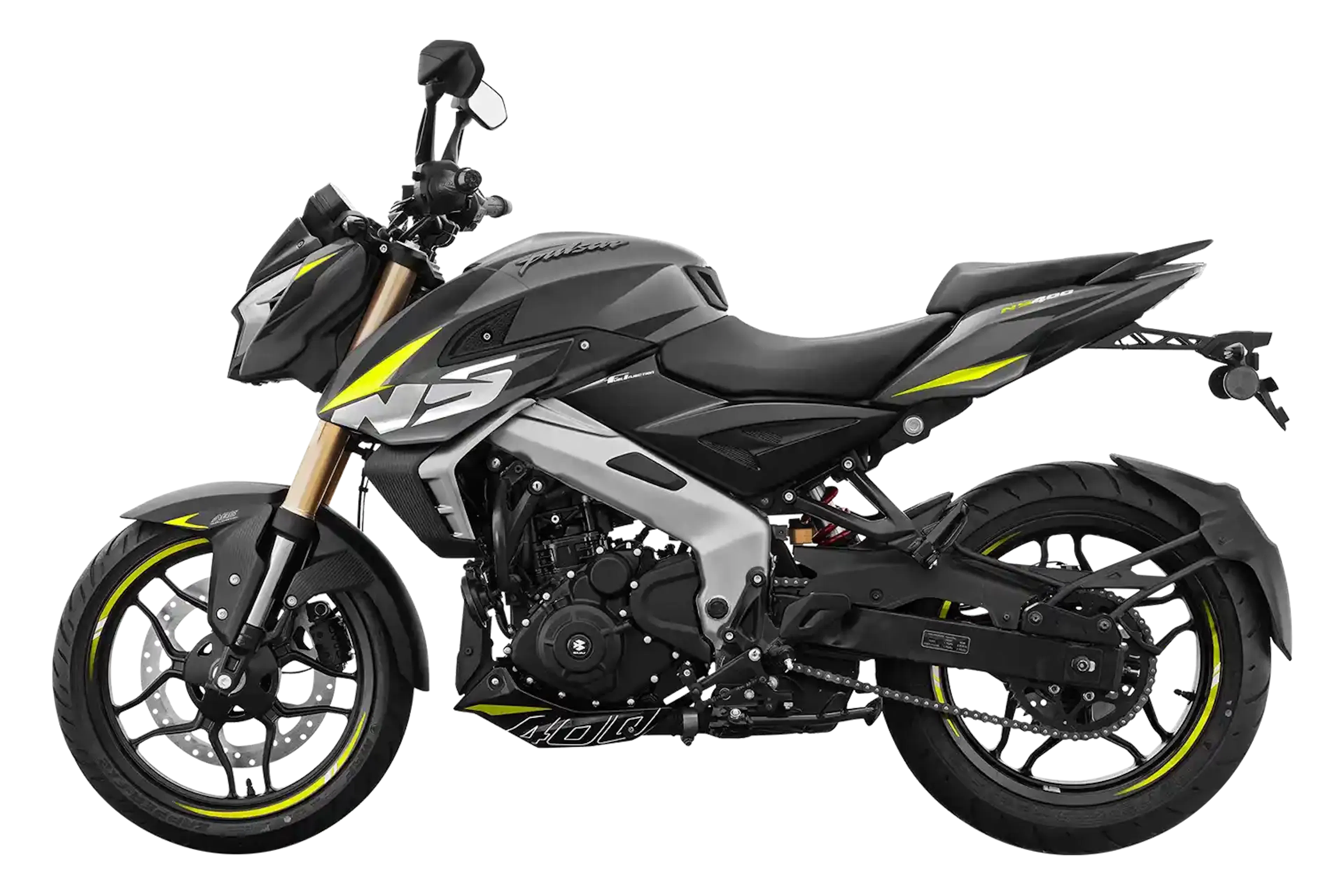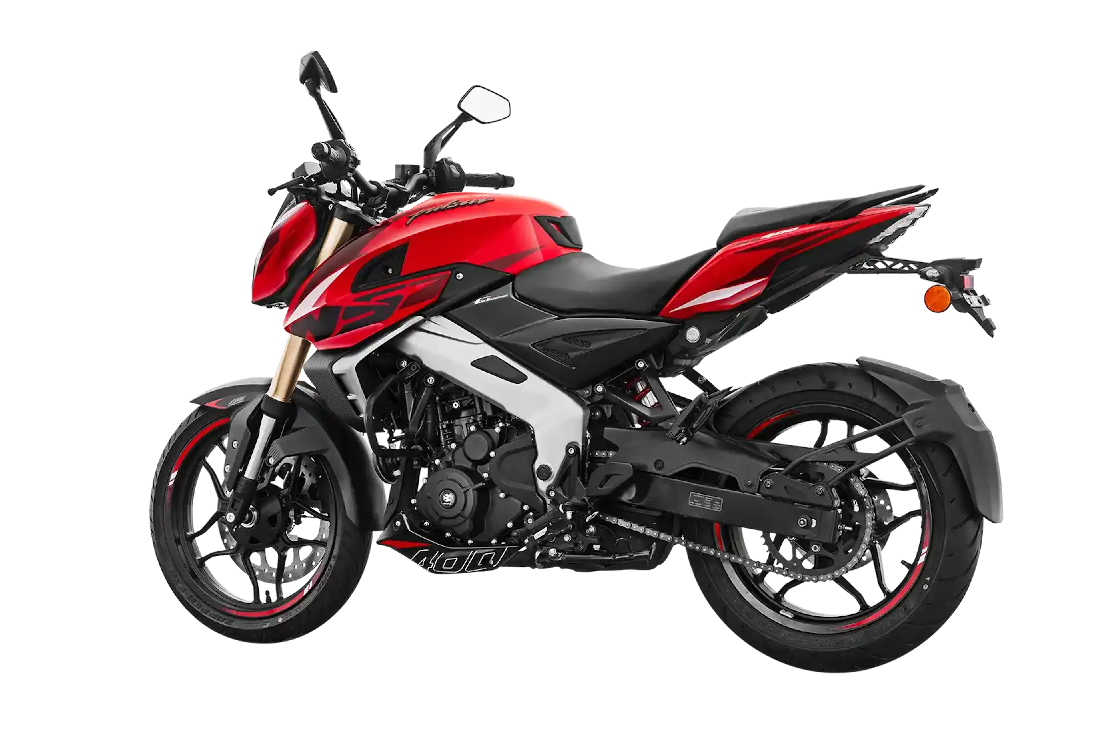La Pulsar NS 400Z es una naked deportiva de alto desempeño: motor monocilíndrico de 373,27 cc, 39,5 Hp y 35 Nm, con inyección electrónica y caja de 6 velocidades, pensada para ciudad y carretera con mucha respuesta y manejo firme.